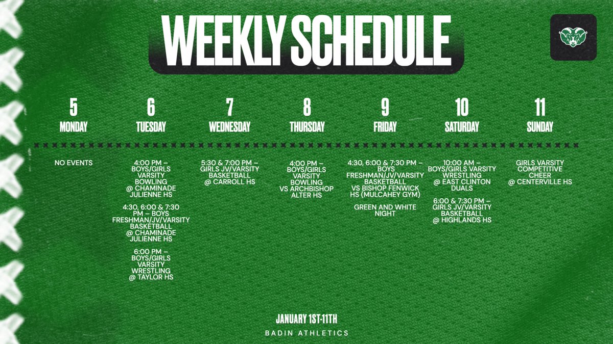 Football Strength Camp- See Flyer Who:Current 7th & 8th grade boys and girls When:Sundays & Tuesdays | 6:00–7:00 PMBegins Tuesday, February 3...